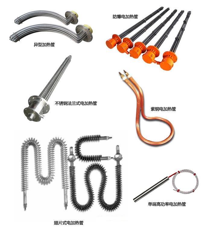 電壓可設(shè)計(jì)為:12-660V 功率為:50W-20KW 材質(zhì)有:10#鐵、T4銅、1Cr18Ni9Ti不銹鋼、Ti鈦等。 規(guī)格有:U型、W型、異形、帶散熱翅片電加熱管、輻射管等,